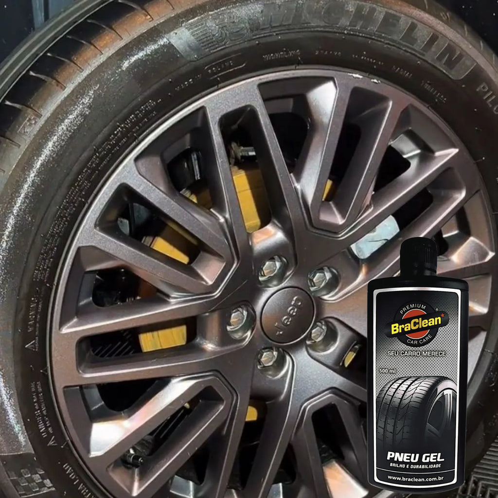 Acabamento premium: carro limpo + pneus com preto profundo e aspecto renovado.