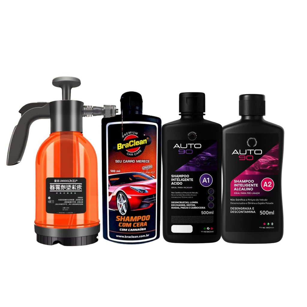 Esse é o kit de entrada perfeito para quem quer lavar o carro com espuma de verdade, sem precisar de lavadora de alta pressão.